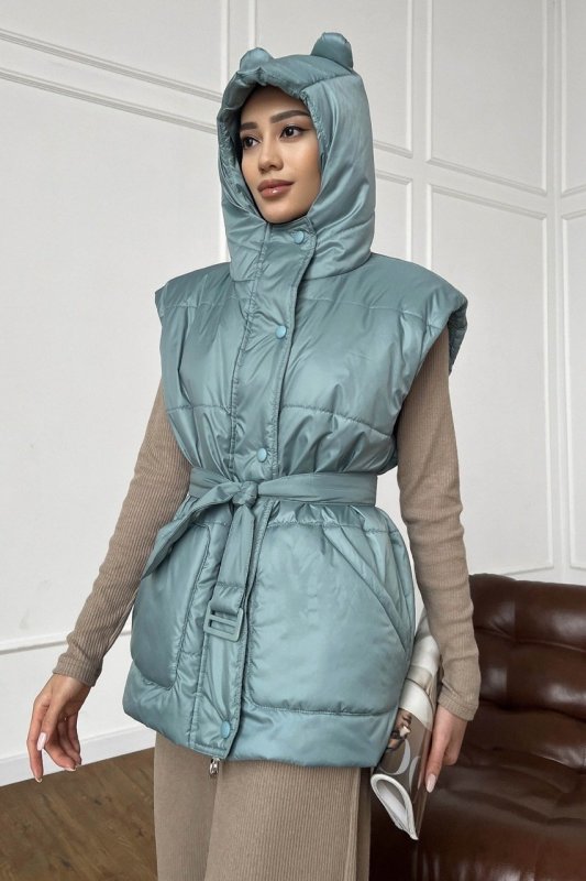 Наша новинка – стильный удлиненный жилет из плащевки на молнии и кнопках с капюшоном. В качестве утеплителя выступает синтепух (150 г/м2). Модель представлена в актуальных в этом сезоне цветах на любой вкус. Жилет декорирован милыми ушками на капюшоне. Большие накладные карманы придают практичности и удобству. Пояс в комплекте.