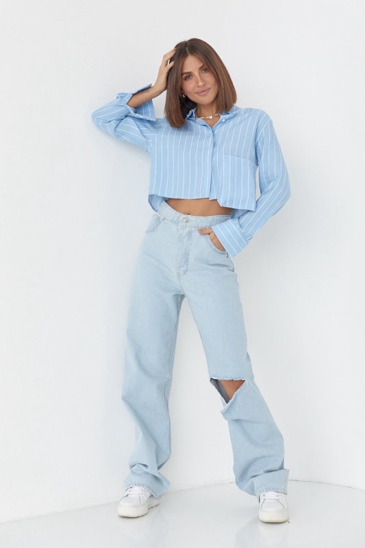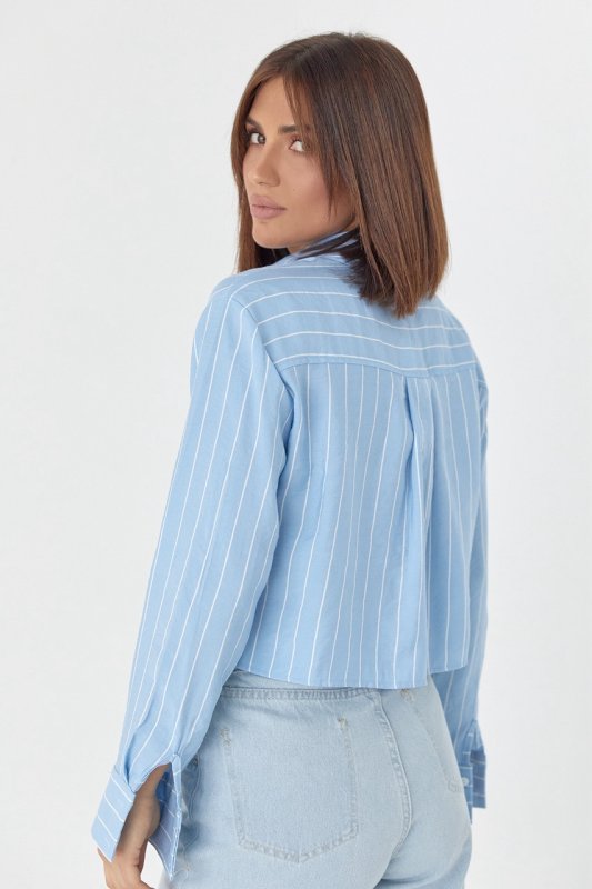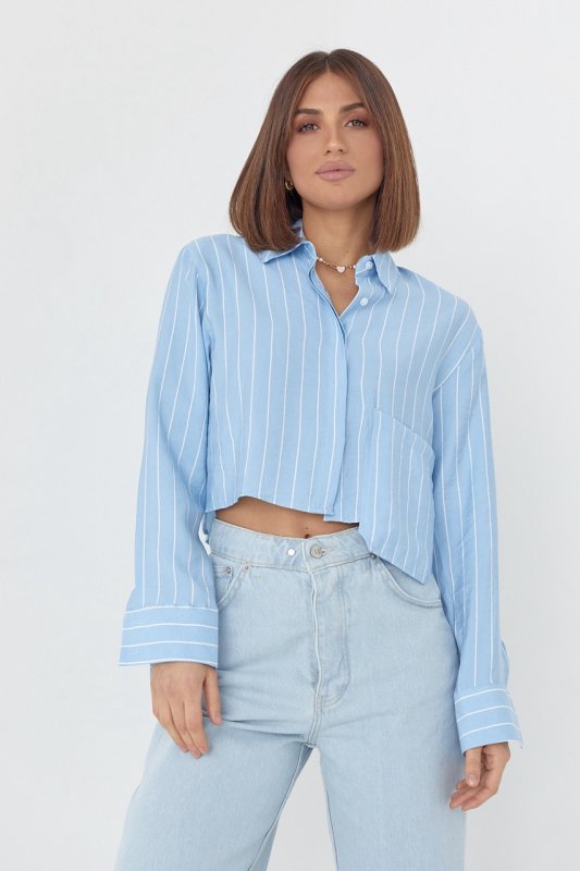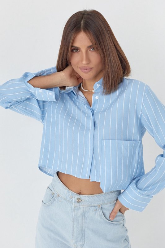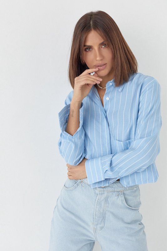 Укороченная рубашка в полоску - 4447 голубой