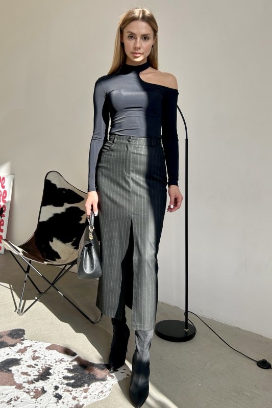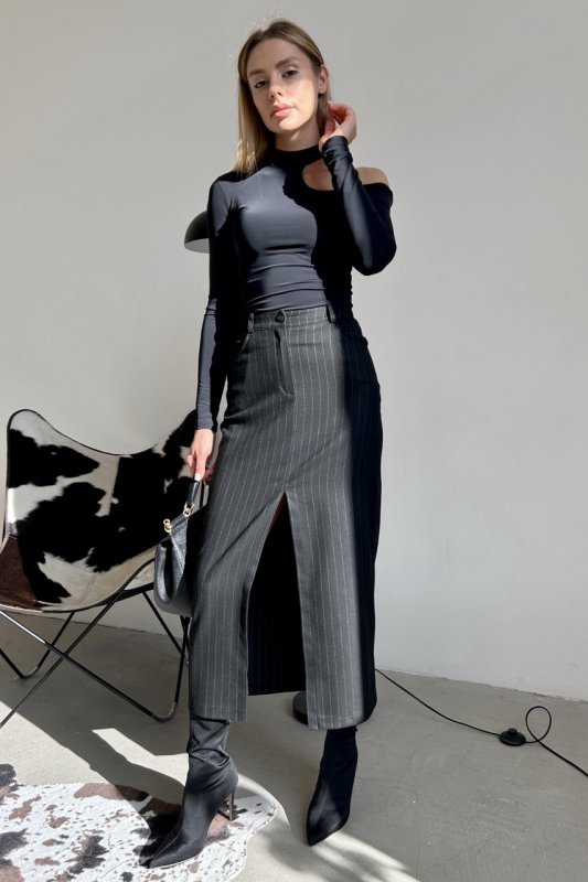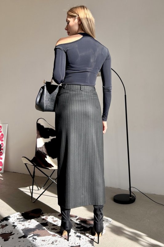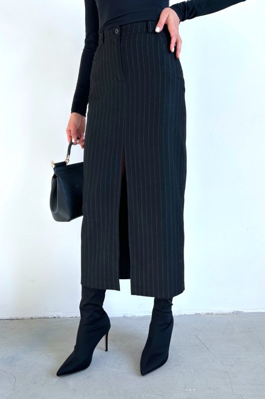 Юбка макси из костюмной шерсти черная в полоску 6217