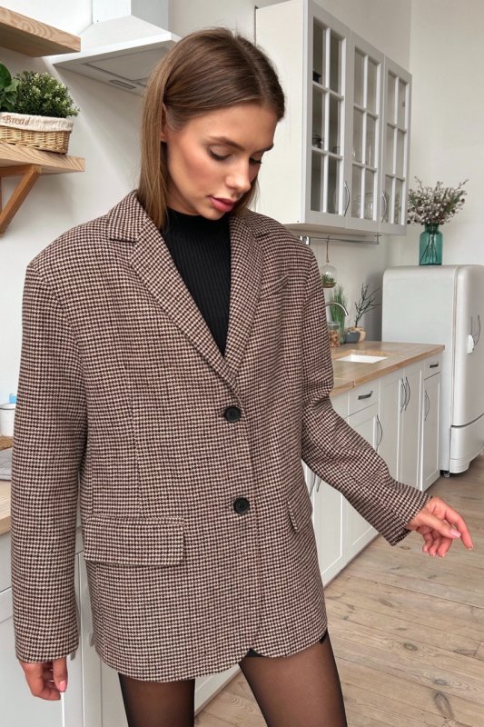 Этот стильный пиджак оверсайз изготовлен из ткани с добавлением шерсти. Он идеально подойдет для стильного образа.