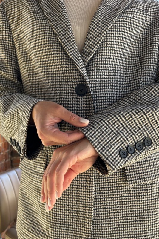 Этот стильный пиджак оверсайз изготовлен из ткани с добавлением шерсти. Он идеально подойдет для стильного образа.