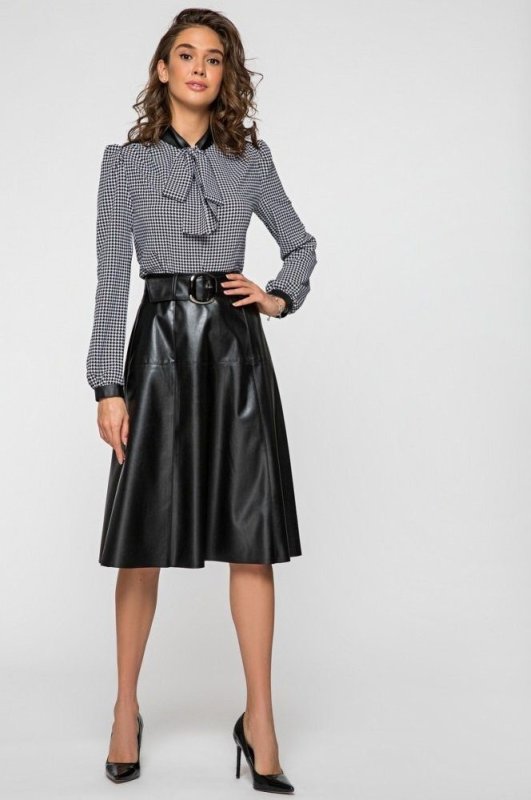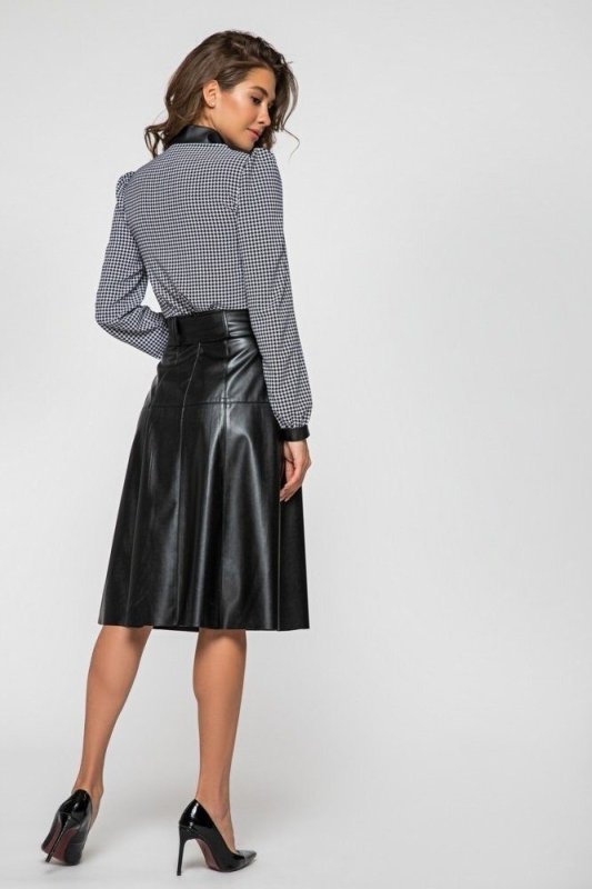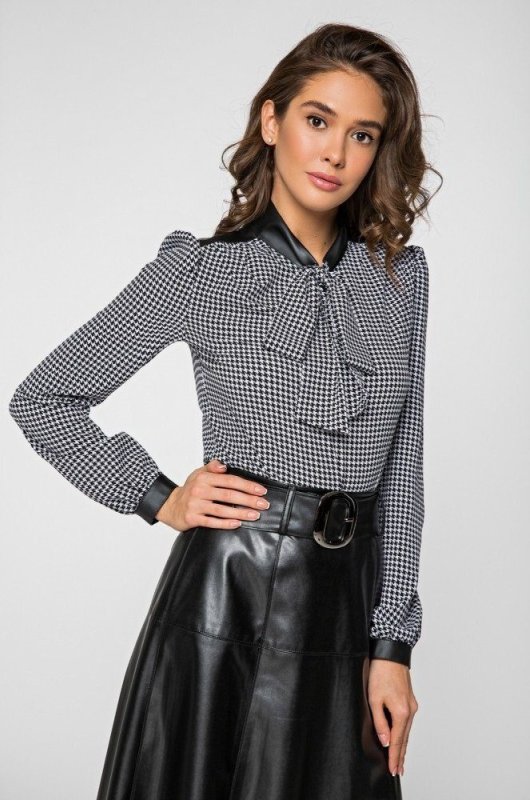 Елегантна блуза з вставками з еко-шкіри на комірі та манжетах.