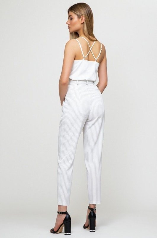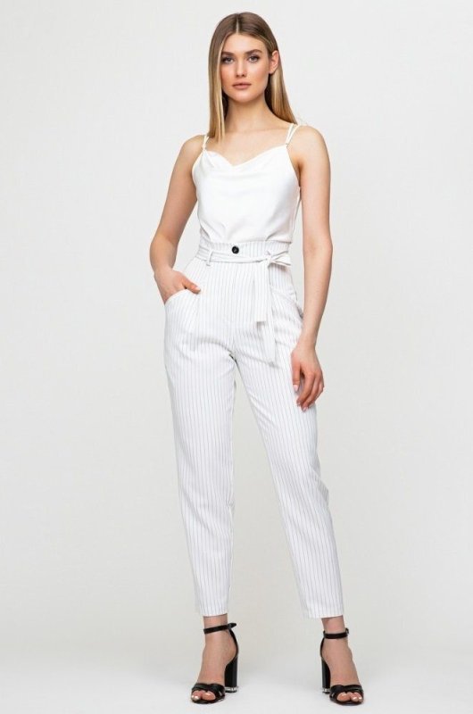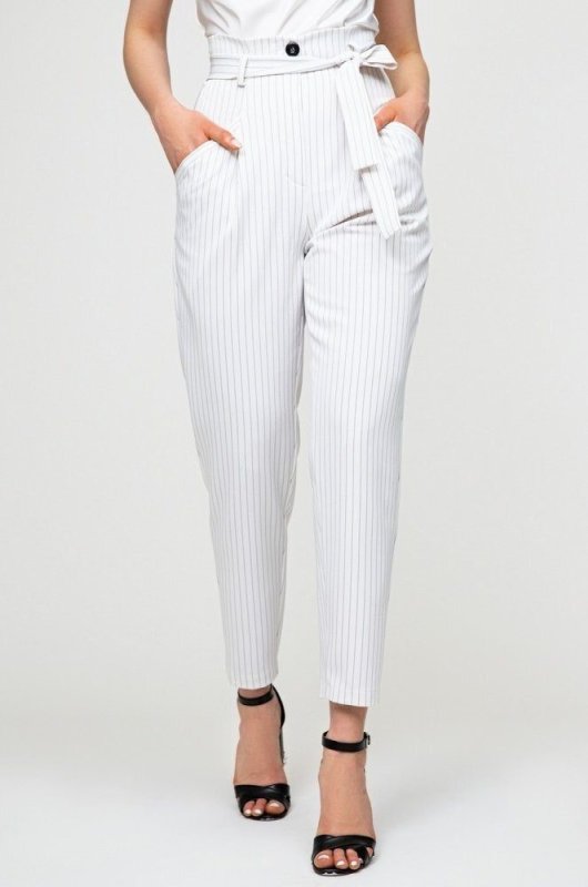 Трендові брюки-банани з костюмної тканини з місткими бічними кишенями. Застібаються на блискавку і гудзика спереду, комплектуються поясом.