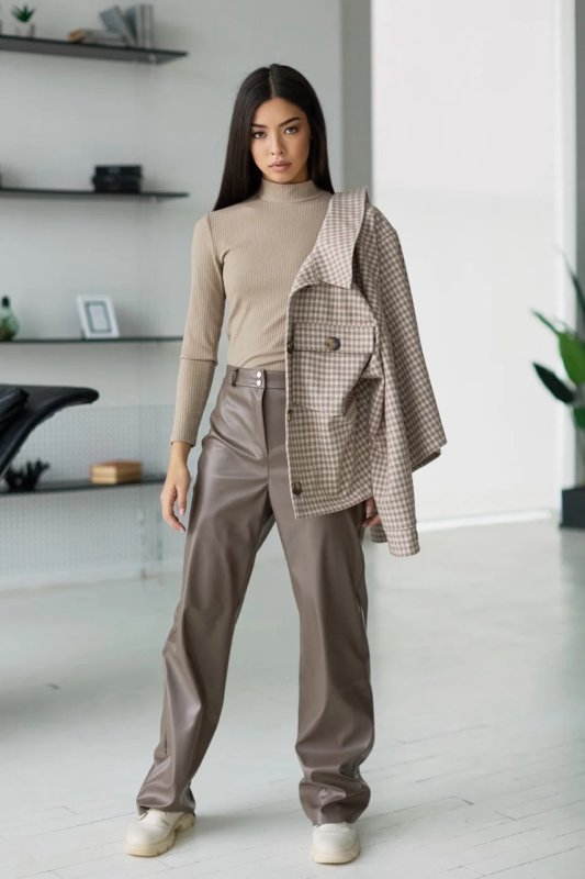 Фасон: штани прямого крою, з високою посадкою, із завищеною талією