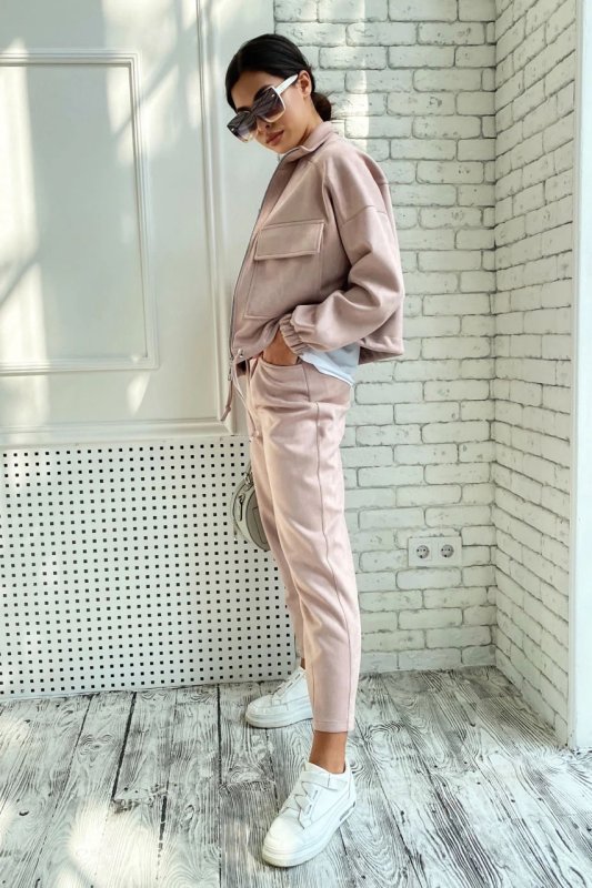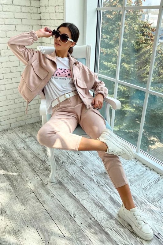 Широкі штани із високою посадкою. Матеріал – замша на дайвінгу. Фасон вільний, широкий. Виточення внизу штанів, кишеня з відрізним бочком.