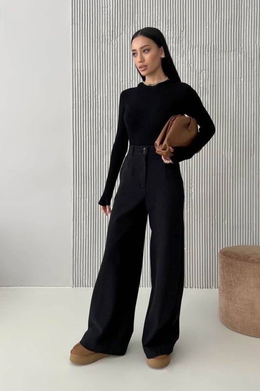 Декілька останніх років штани-палаццо не сходять з подіумів і вважаються хітом сезону. Щільна, тепла тканина – чудове рішення для весни та осені.