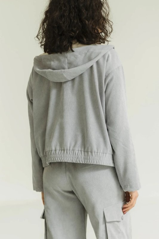 Конструктивні елементи: пояс на резинці, рукава на затяжках, капюшон