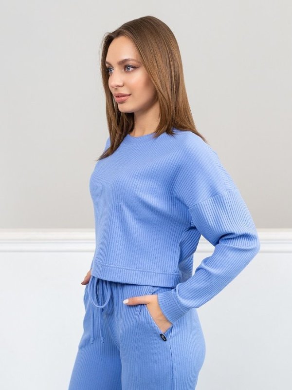 Легкий укорочений лонгслів вільного крою зі спущеною лінією плеча. Оформлений пришивним декоративним елементом на поличці з найменуванням бренду.