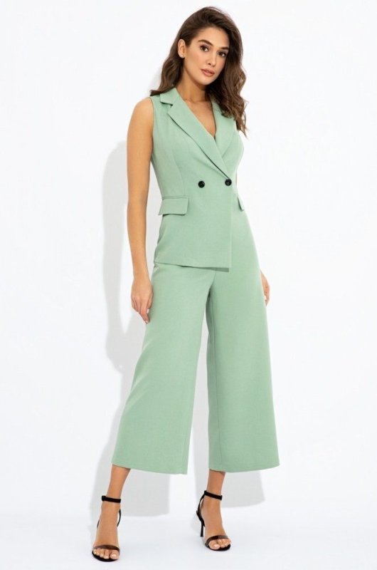 Модний комбінезон з брюками-кюлотами в діловому стилі. Застібається на гудзик і потайні змійку всередині.