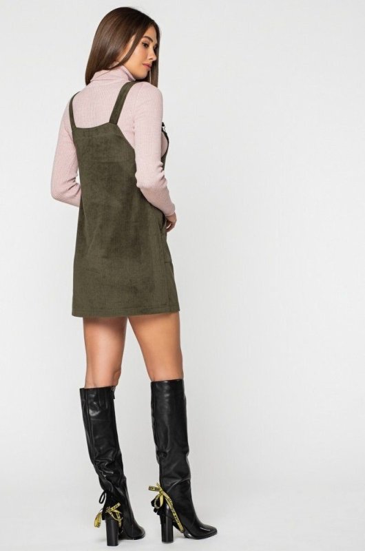 Модний сарафан з вельвету прямого крою на широких регульованих бретелях.