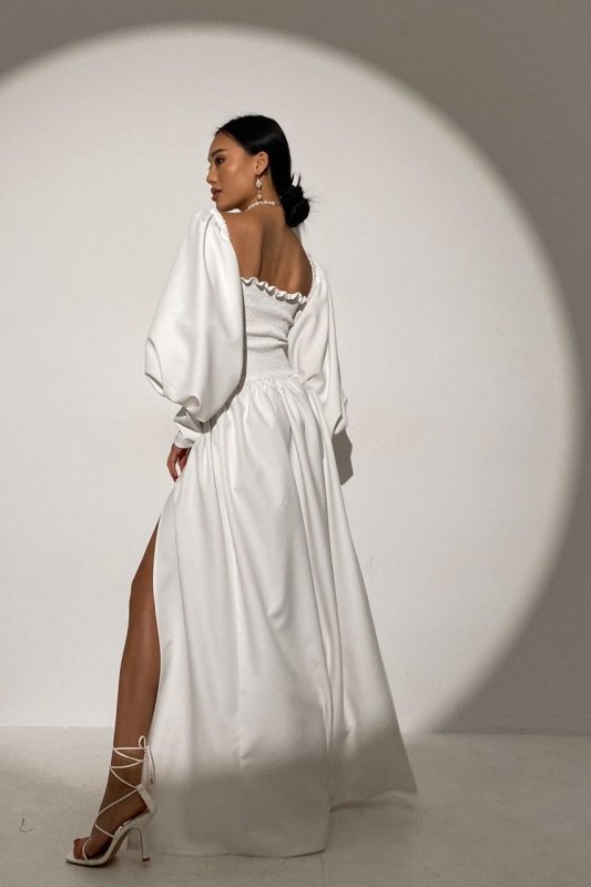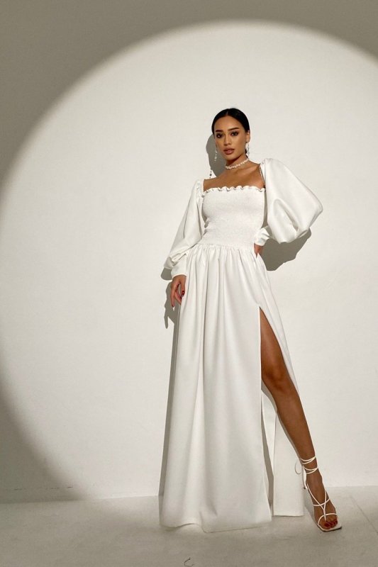 ● Декоративні елементи: резинка по ліфу, високий розріз по переду.