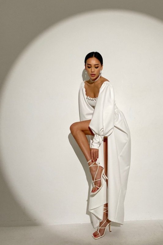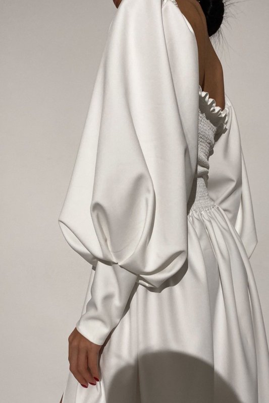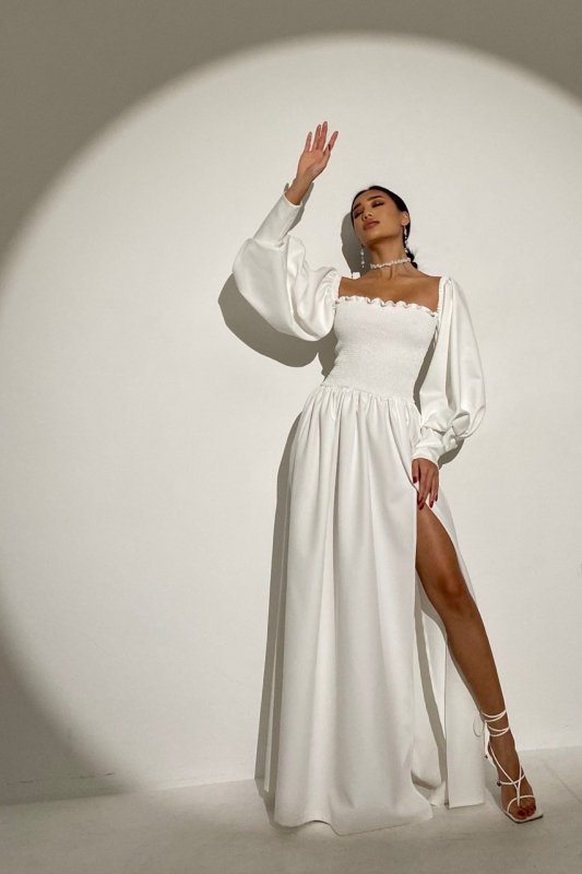 Шикарна і повітряна сукня «Ділара» додасть ніжності та жіночності у сучасний образ дівчини. Сукня Х-подібного силуету з пишним рукавом на високому манжеті. Ліф на резинці, відмінно підійде для струнких дівчат так і власниць пишних форм. По переду передбачено високий розріз. Рукав – пришивний на резинці. Пишна спідниця додасть Вашому образу романтичності. До жіночного образу сміливо додавайте взуття на підборах, компактні сумочки та елегантну біжутерію.