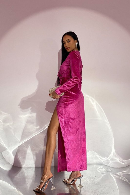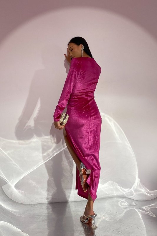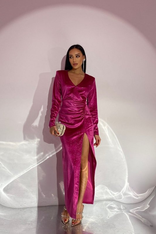 Довга сукня з Королівського оксамиту з вплетенням металізованої люрексової нитки - це твій ідеальний образ для вечірки, або новорічного застілля! По переду декоративна драпірування переходить у високий розріз. Актуальні в цьому сезоні підплічники правильно виділяють лінію плеча. Фасон сукні з запахом дуже зручний, так як воно буде бездоганно виглядати на будь-якій фігурці. Така модель створює сексуальний і летить образ!