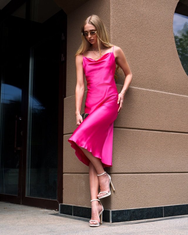 Шовкова сукня-міді в стилі білизни 51407 малинова