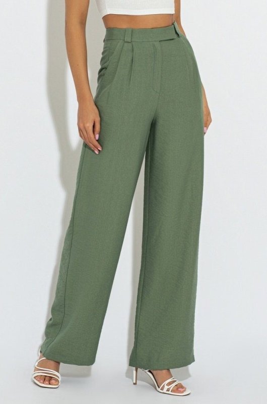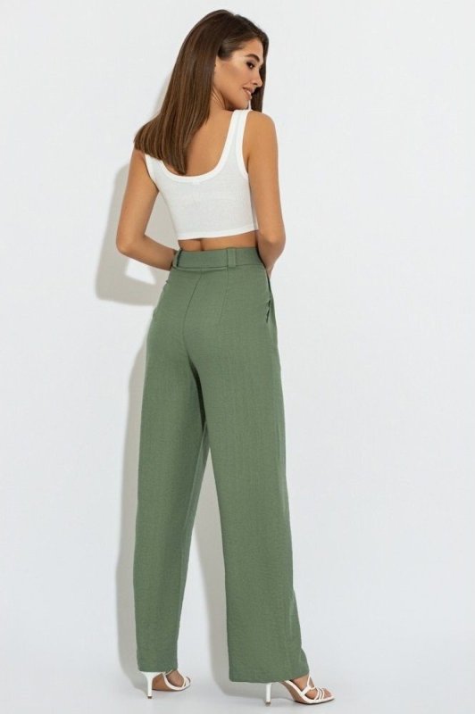 Штани з лляної тканини з високою талією і бічними кишенями, що застібаються на блискавку і гудзика.