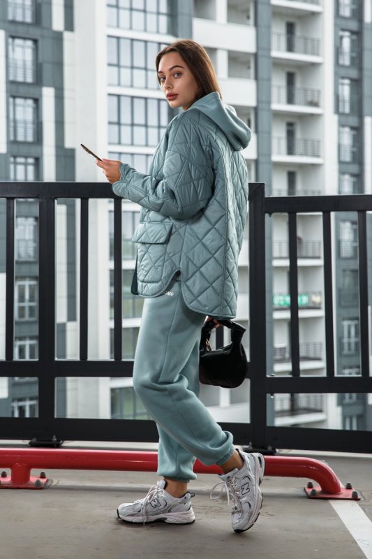Стьобнаний лайнер на мікро пуху мінт 7532