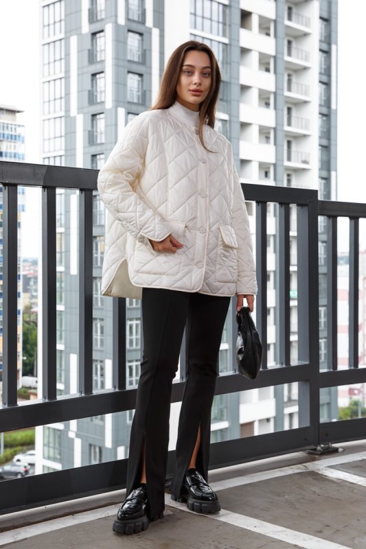 Стьбаний лайнер на мікро пуху молочного кольору 7530