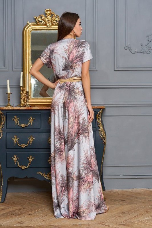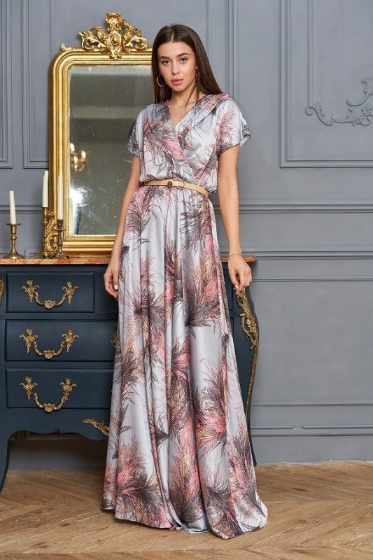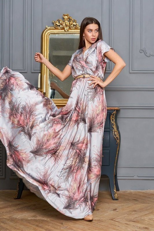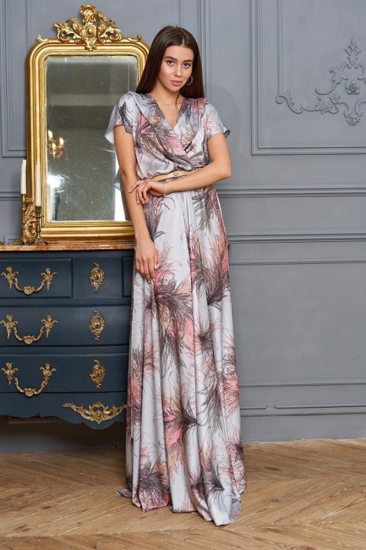 Довге жіночне плаття в підлогу з шовку "Армані" з цікавим принтом представлено у двох вишуканих варіантах - сонячне золото і холодна сталь. Ліф на запах декорований драпіруванням по краю вирізу декольте. Струмуюча довга спідниця і елегантний рукав "Летюча миша" створить неповторний образ жіночності та чарівності. Відрізна талія на резинці, підкреслить сильні сторони Вашої фігури, спідниця-дзвін ідеально ляже на фігуру будь-якого типу, красиво малюючи лінію ніг і стегон. У цьому образі Ви будете почувати себе легко і привабливо в будь-якій компанії.