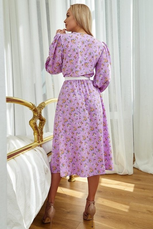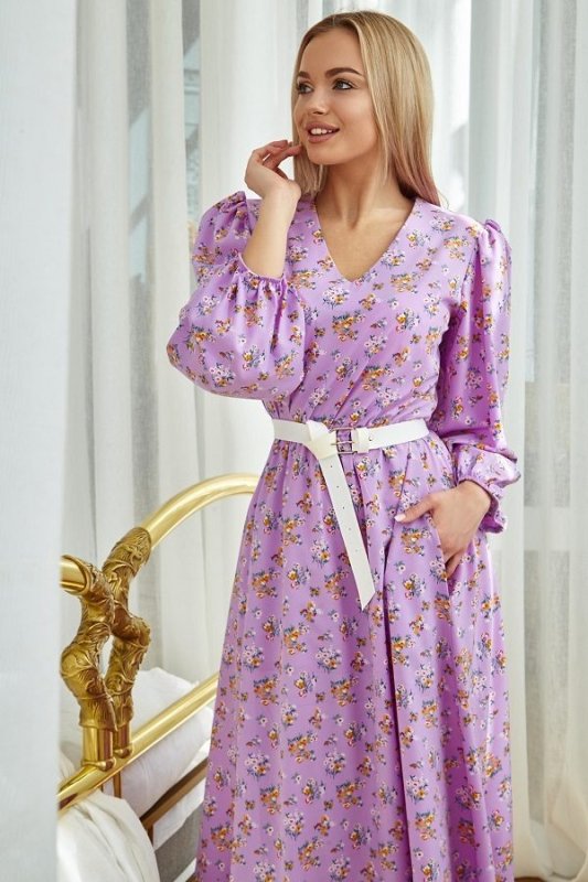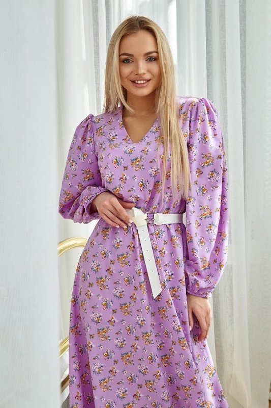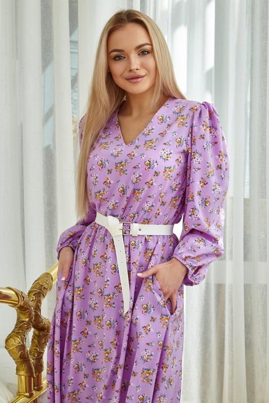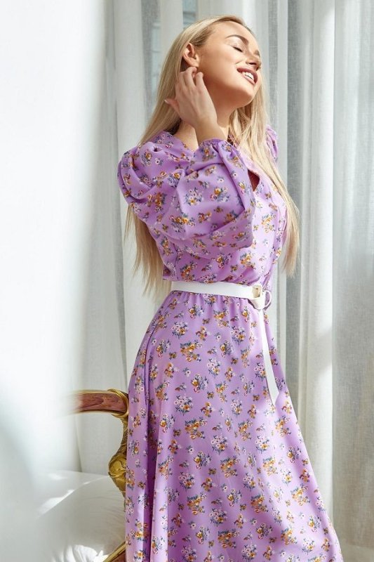 Модний образ в літньому платті-це повітряний силует і квітковий принт з дрібних польових квітів. Ці флористичні мотиви принтів можна було побачити на показах Chanel, Bottogn і т.д. підтримує модель знімний широкий пояс акцентного білого кольору (в комплект не входить, продається окремо в розділі Аксесуари). Прикрашають плаття об'ємні модні рукава. Довжина сукні дуже ефектно витягує фігуру.