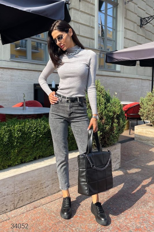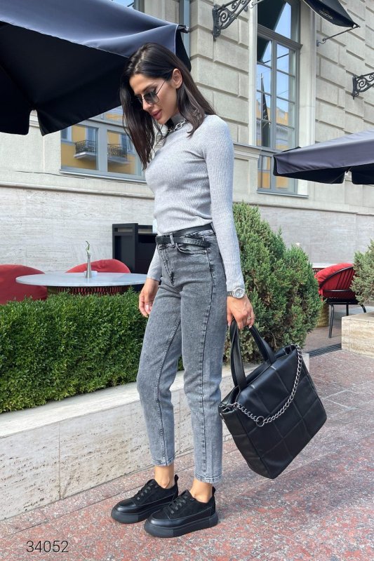 Вибілені сірі джинси мом 34052 сірий
