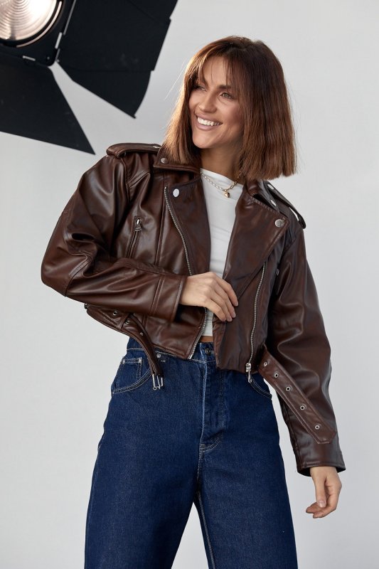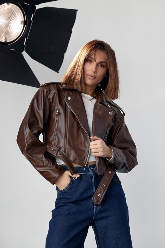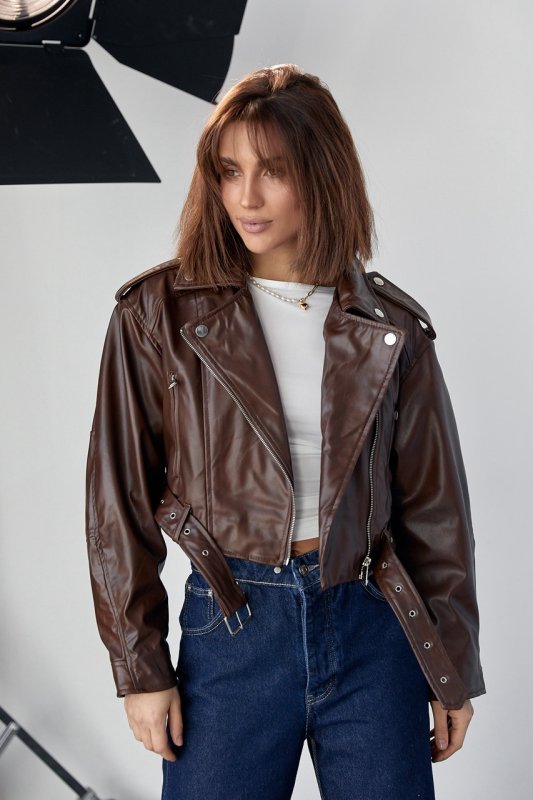 Жіноча коротка косуха з екошкіри 2980 коричневий