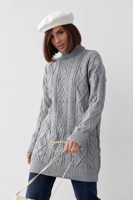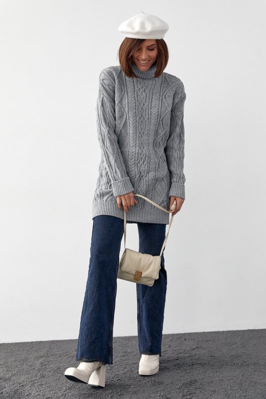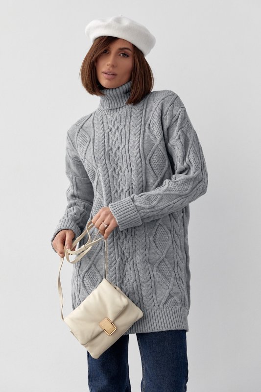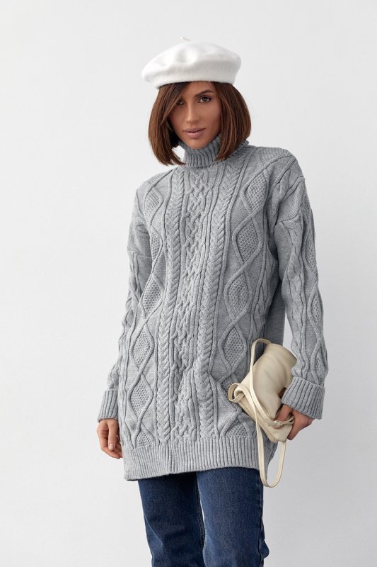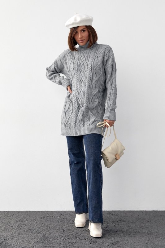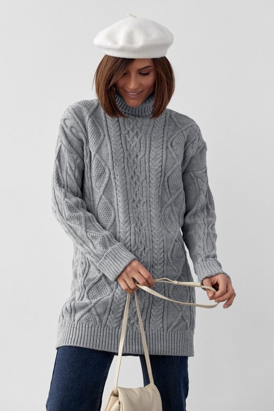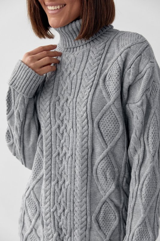 В'язана жіноча туніка з високим коміром 0530 сірий