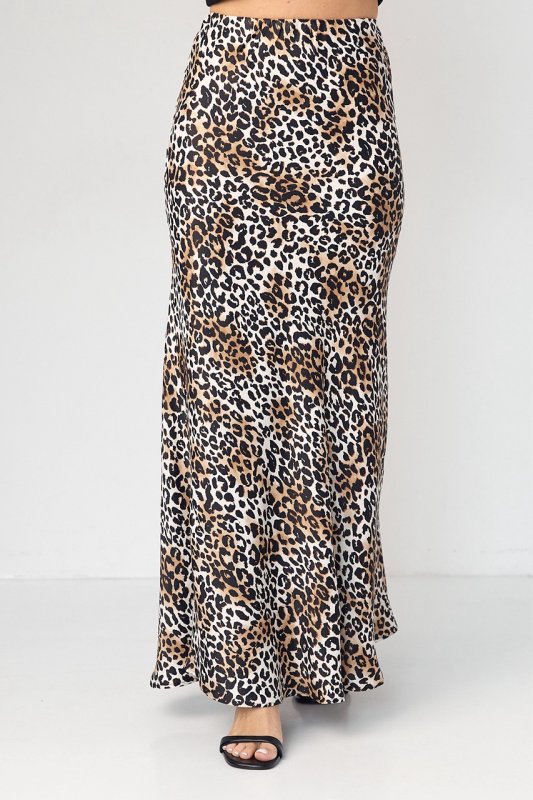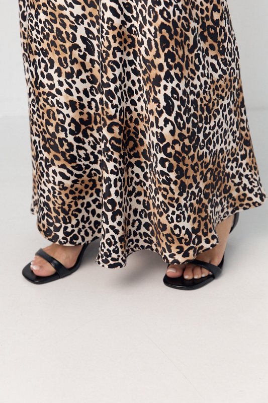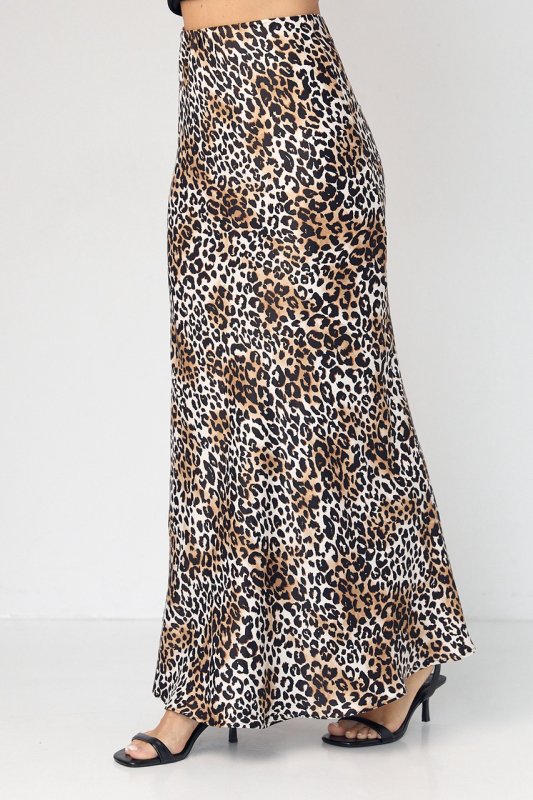 Атласная юбка с леопардовым принтом - 1724 коричневая
