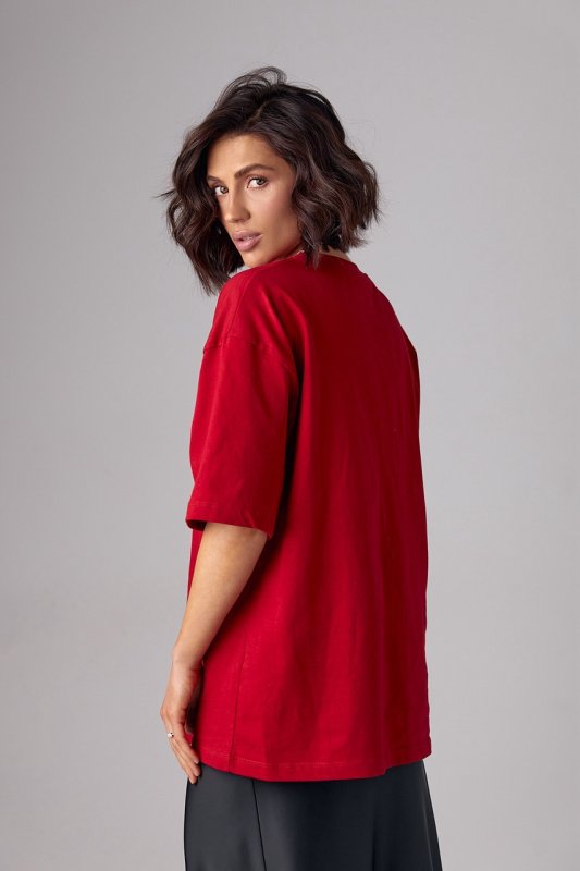 Базовая однотонная футболка oversize - 82793 красная