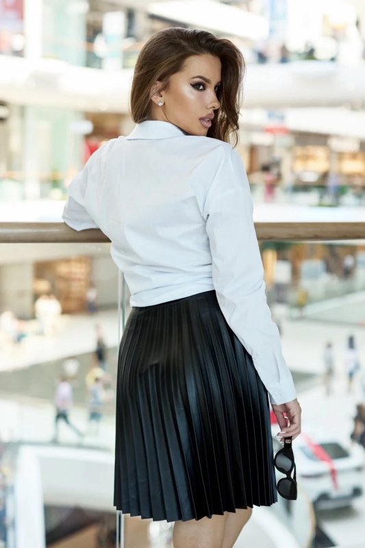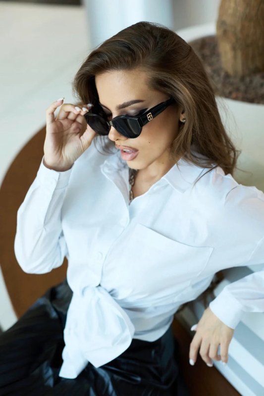 Базовая рубашка в белом цвете незаменимая вещь в каждом гардеробе. Материал: стрейч-коттон. Спереди есть карман. Застежка в виде пуговиц. Отложной воротник. Есть небольшие разрезы в боковых швах.