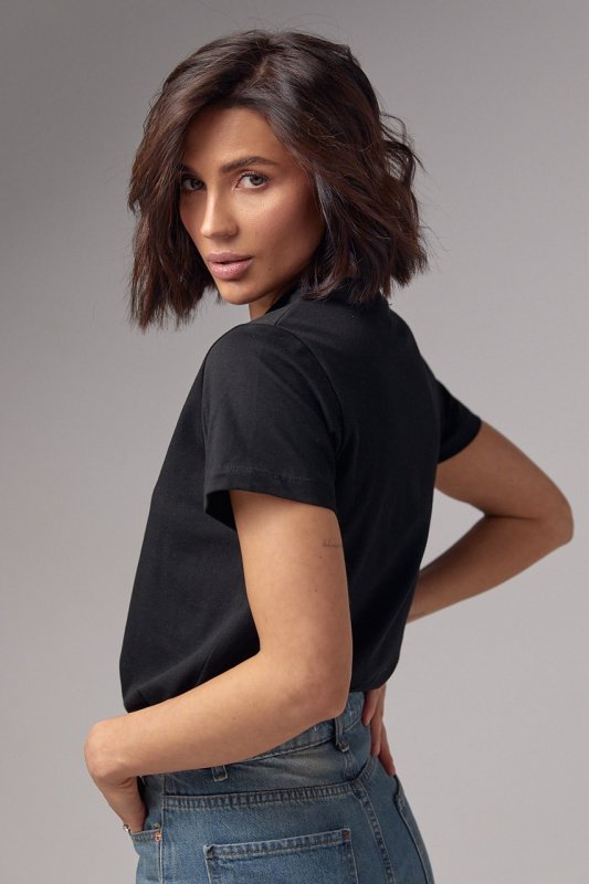 Базовая женская однотонная футболка - 03029 черный