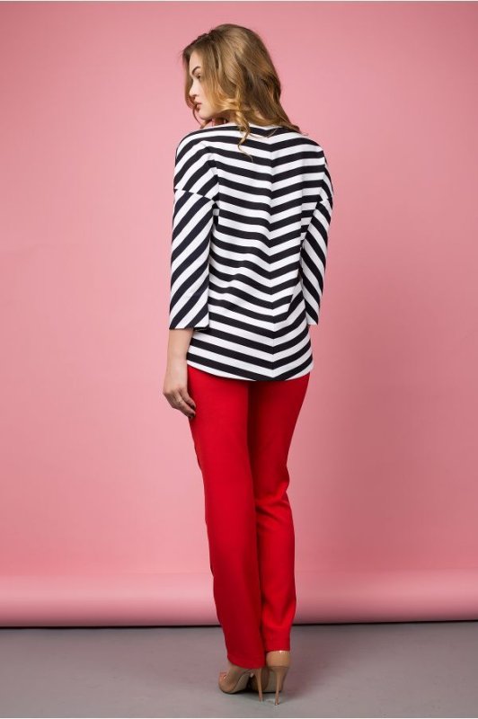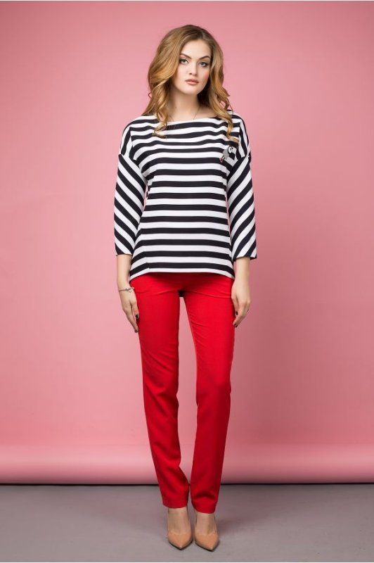Уникальный стиль и комфорт - это женская блуза Адрия! Модель свободного кроя со спущенной проймой рукава. Спинка изделия слегка удлинена. Рукав 3/4. В качестве декора использован забавный значок, который, в случае необходимости, легко можно снять