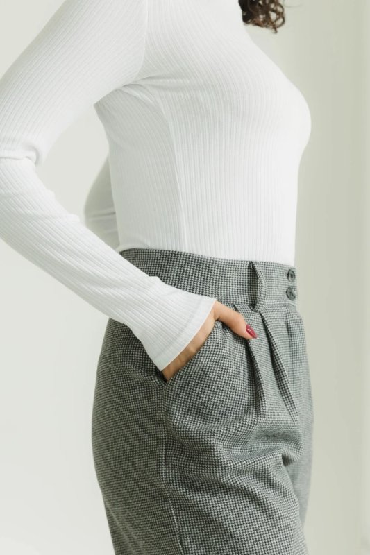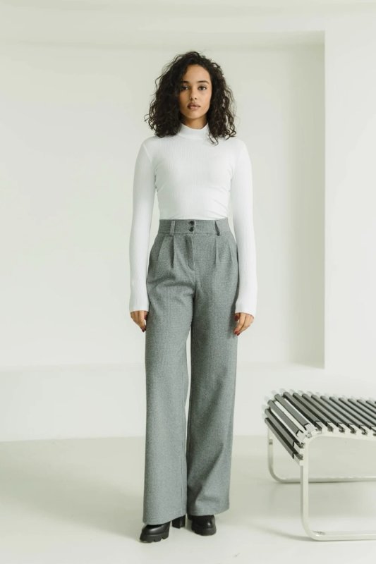 Фасон: широкие брюки, расклешенный, с высокой посадкой, с карманами.