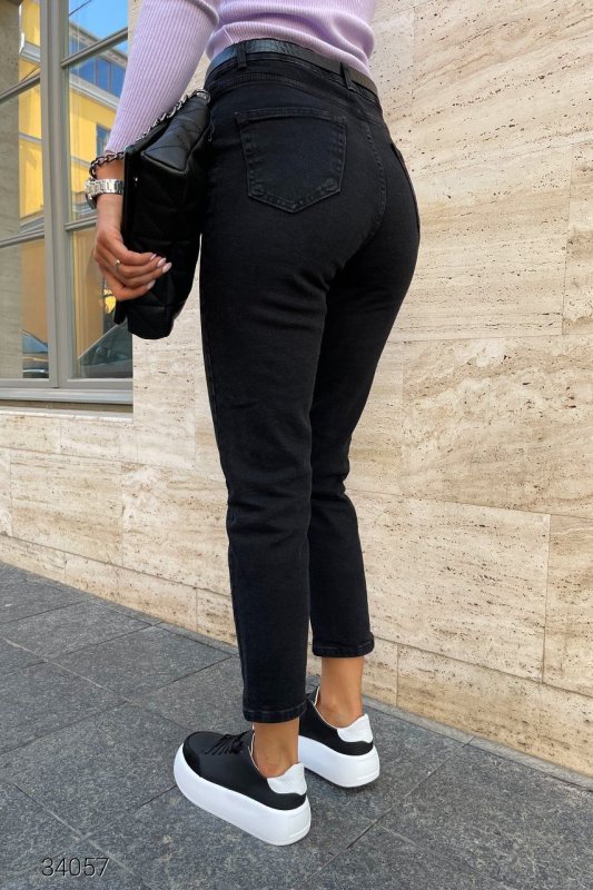 Джинсы из плотного качественного коттона, производства Турции. Зауженный крой в винтажном стиле, завышенная талия, шлёвки, боковые прорезные карманы и накладные карманы сзади. Скрытая ширинка с застёжкой на молнию и пуговицу. Ремень в комплект не входит. Состав ткани: 97% – коттон, 3% – лайкра.
