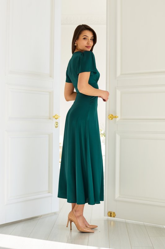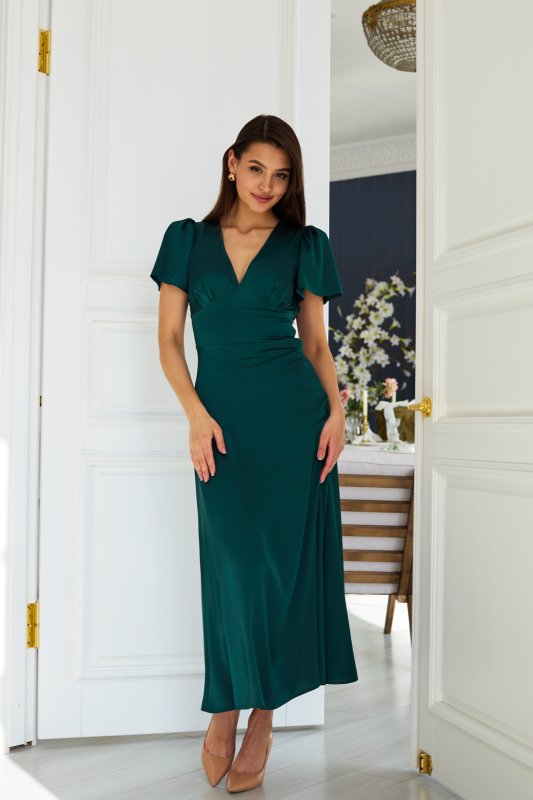 Это волшебное платье из шелка имеет рукава-крылышки и имитацию корсета по талии. V-образный вырез декольте придает привлекательность линии груди. Эта модель подчеркнет женственность и элегантность. Она идеальна для особых случаев и праздничных мероприятий.
