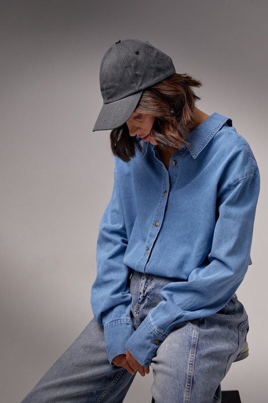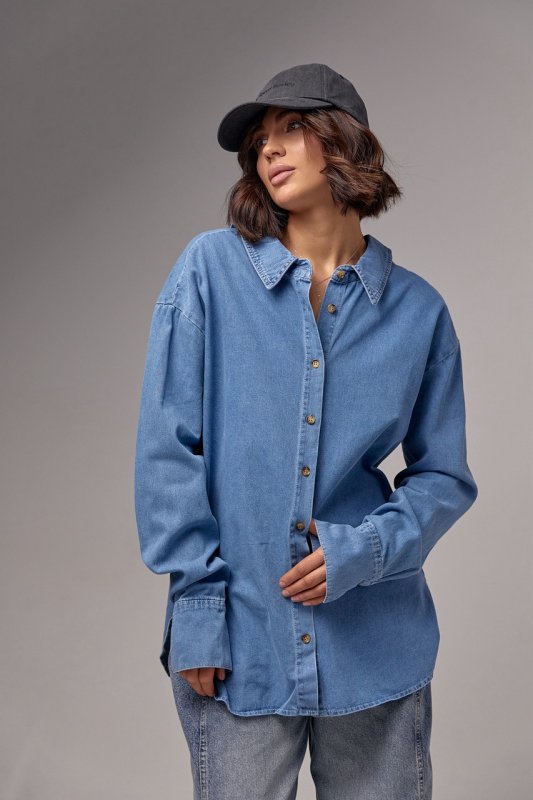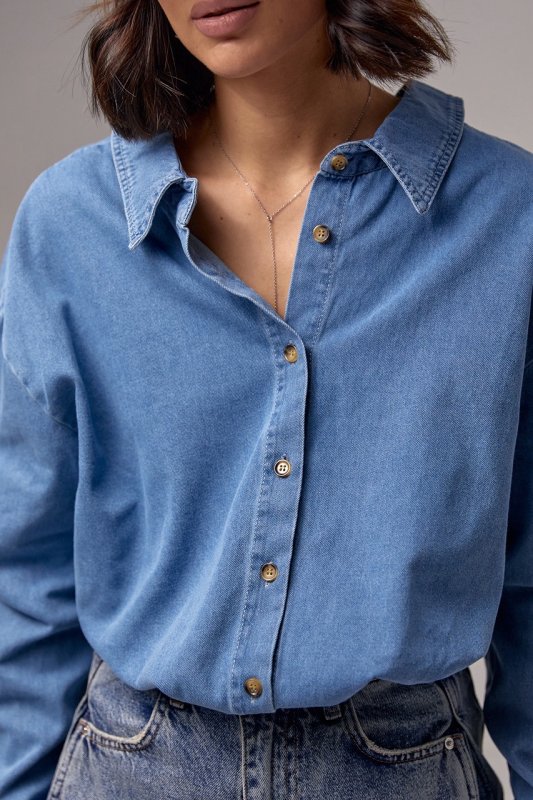 Джинсовая рубашка женская на пуговицах - 3225 синий