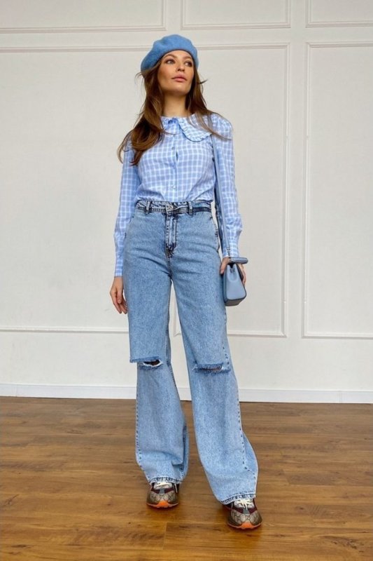 - Модель Джинсы-палаццо, Широкие, Рваные