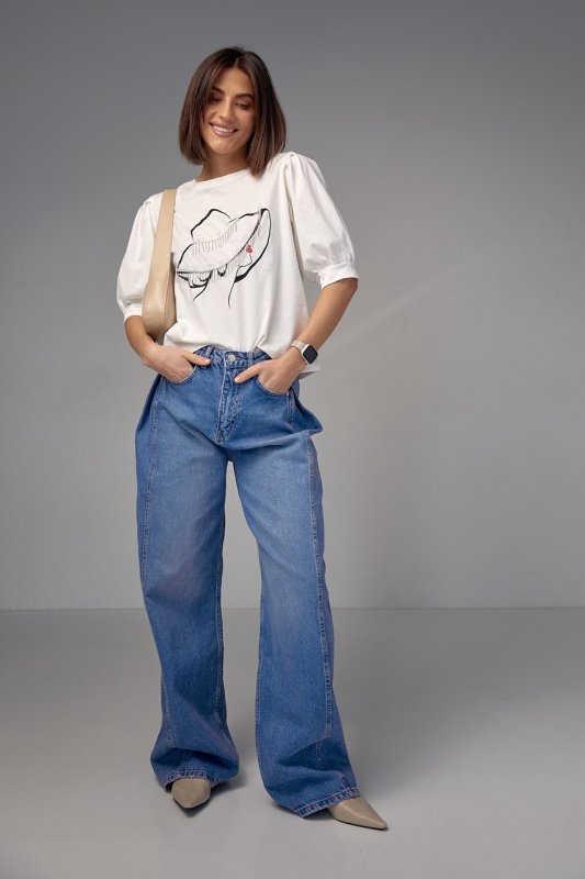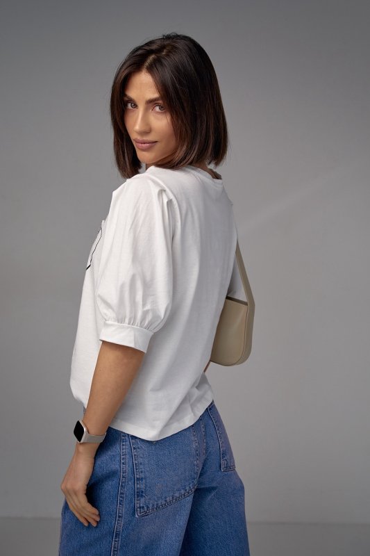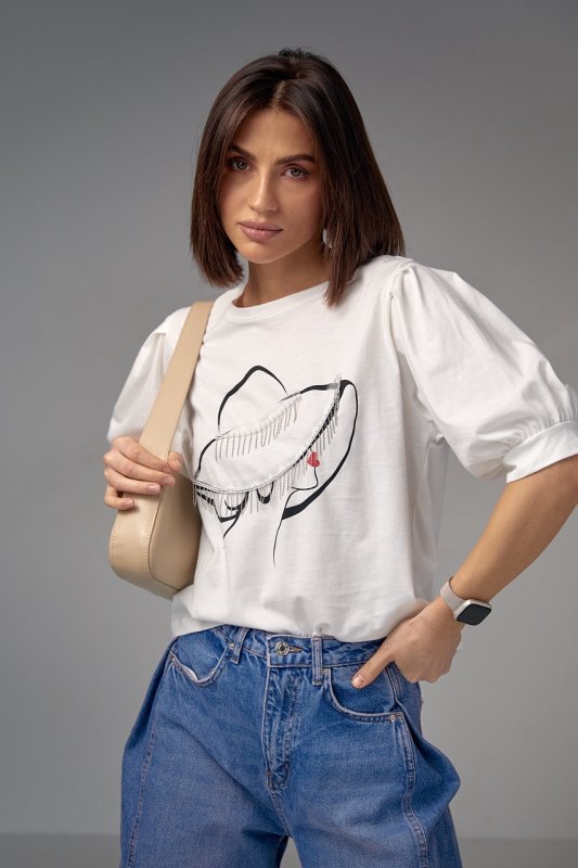 Футболка с рукавами-фонариками и принтом шляпки - 28356 молочная