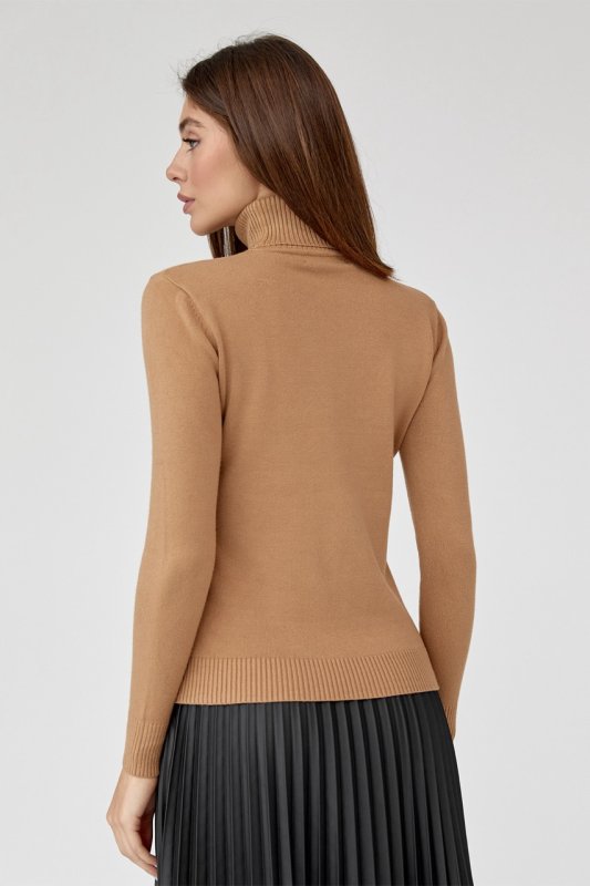 Трикотажный теплый гольф с круглой горловиной, высота вортника-стойки 15 см. Рукава втачные, длинные. По низу изделия и рукавов: манжет-резинка.
