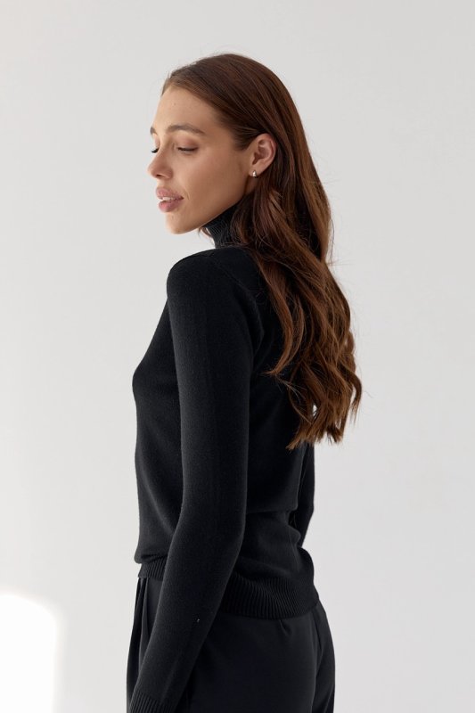 Трикотажный теплый гольф с круглой горловиной, высота вортника-стойки 15 см. Рукава втачные, длинные. По низу изделия и рукавов: манжет-резинка.