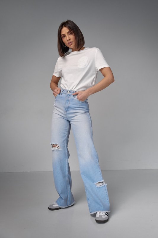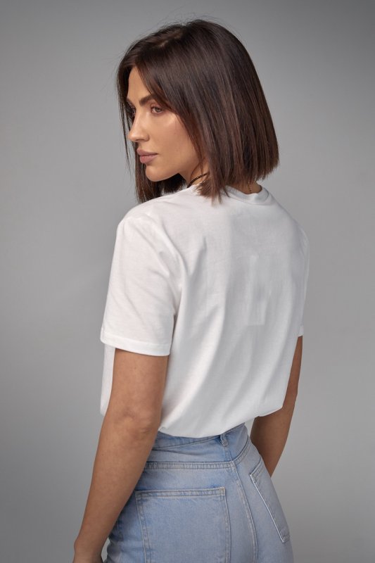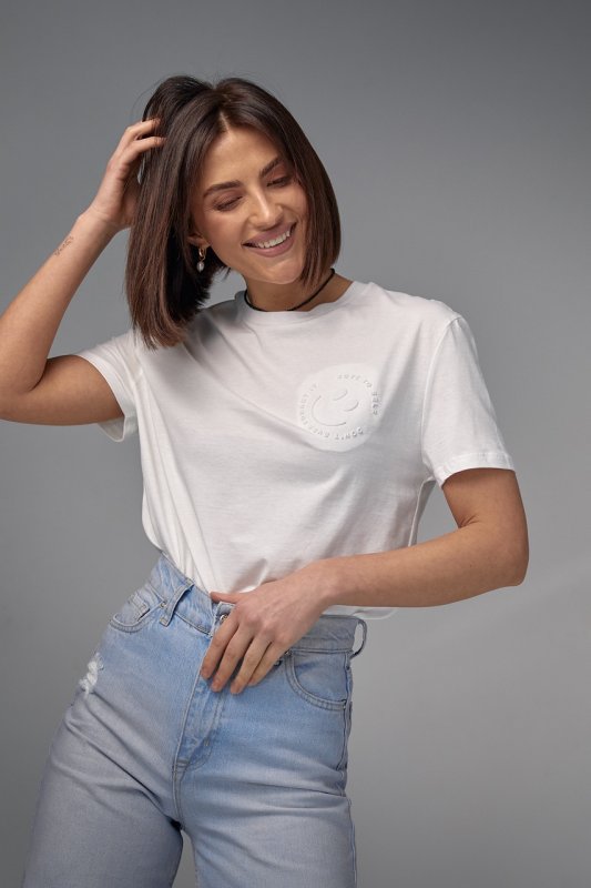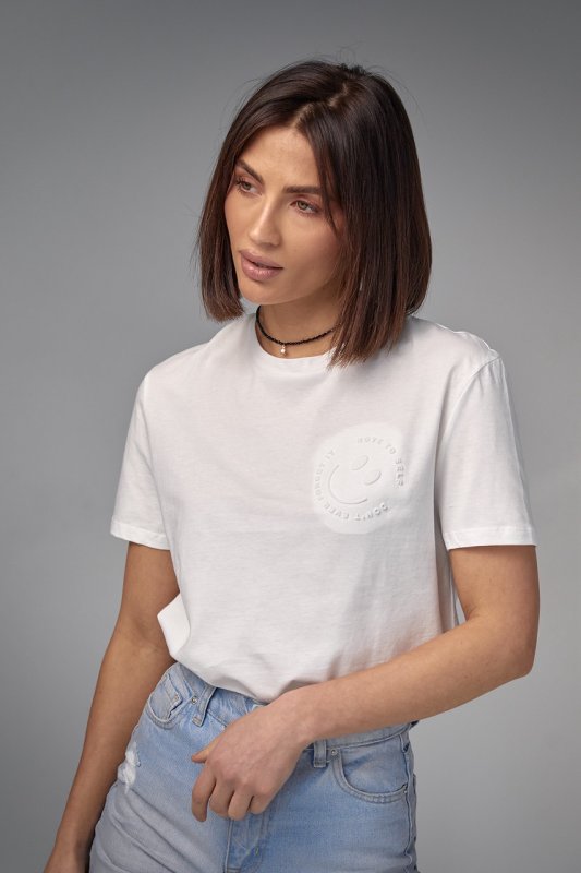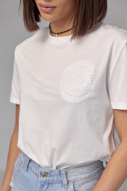 Хлопковая футболка с выпуклым принтом смайла - 02403 молочная