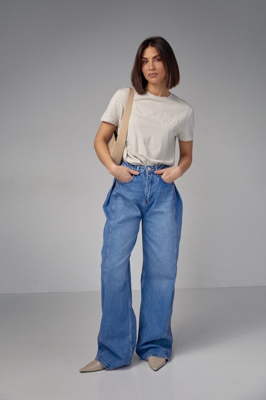 Принт смайла, выполненный в выпуклой технике, придает футболке объемность и привлекательность. Сама футболка идет с короткими рукавами, прямым низом и бейкой на круглой горловине.