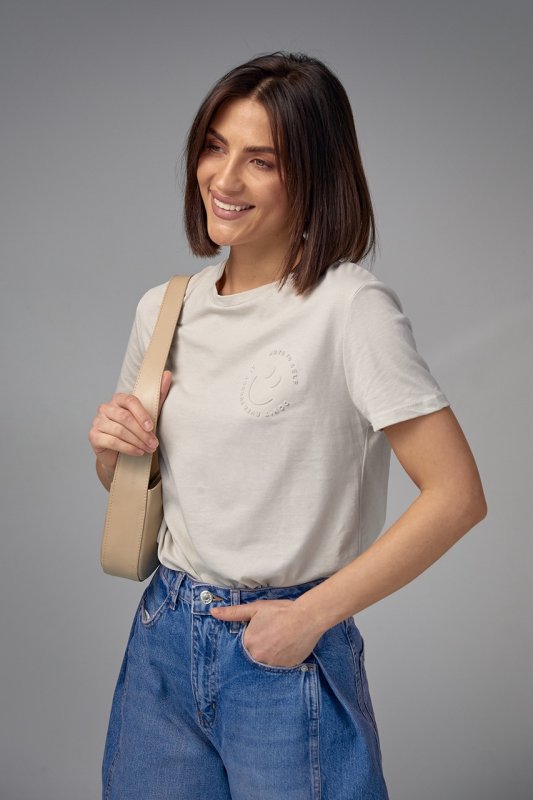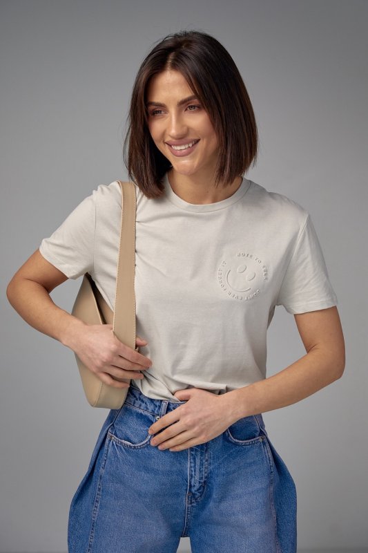 Хлопковая футболка с выпуклым принтом смайла - 02403 светло-серый