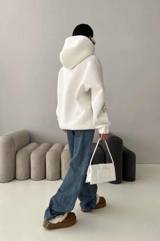 Объемный худи owersize из теплого футера - никогда не выходит из моды. Универсальная, удобная вещь на все случаи жизни. Удобная длина позволит носить тощие с джинсами или лосинами, с ботфортами или юбкой макси, – сочетаний может быть множество. Внизу ширина тощи регулируется шнурком. Удивительно качественная и комфортная ткань позволит Вам носить эту модель не один сезон. Прекрасный выбор на прохладную осень или зиму – теплая кофта с капюшоном, которую можно в любой момент одеть или снять. На рукавах стильная накатка.