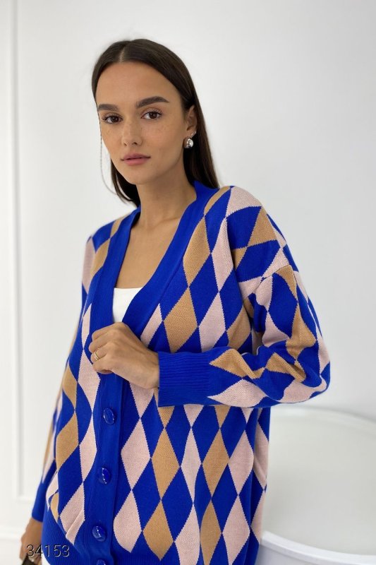 Кардиган свободного кроя из качественной вязки. V-образный вырез, заниженная линия плеч, манжеты и нижняя кромка в рубчик, планка на пуговицах. Размер универсальный, подходит на 42-46. Состав ткани: 100% – акрил.