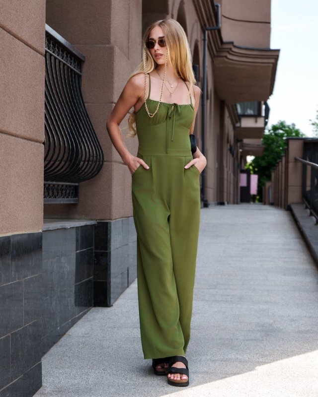 Комбинезон из крешевого льна хаки 4608