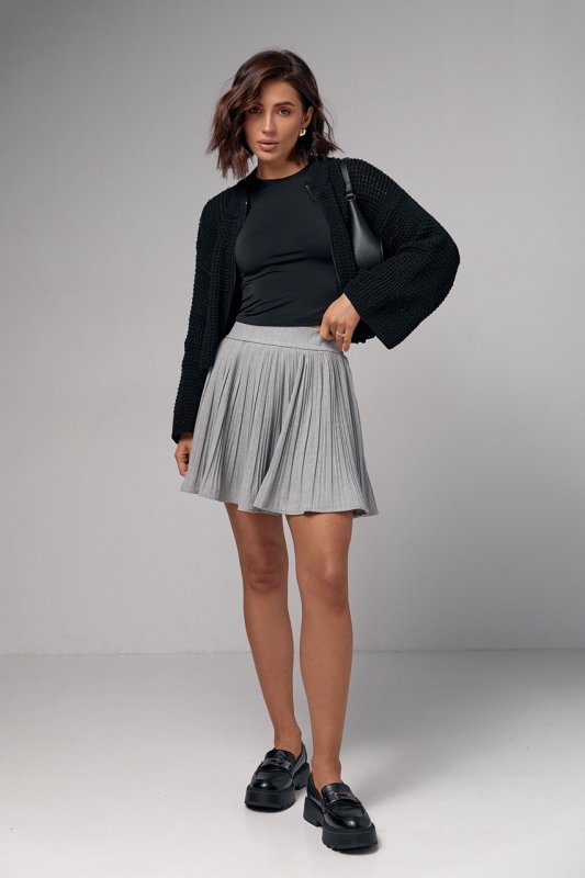 С такой модной короткой плиссированной юбкой ты получишь самые стильные образы в новом сезоне. Она превосходно будет смотреться и с легкими блузами, и с футболками oversize, и с приталенными майками.