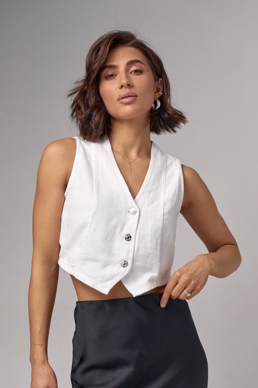 Короткий котоновый жилет на пуговицах - 9050 молочный