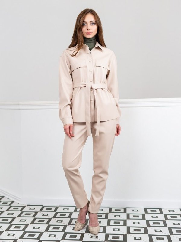 Эффектный брючный костюм из мягкой стрейчевой экокожи. Костюм состоит из рубашки Белуччи и брюк Роберто.