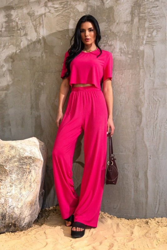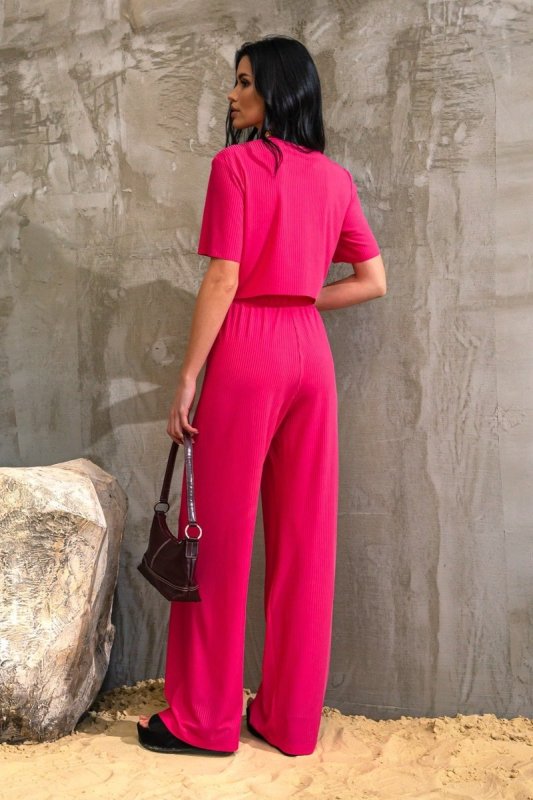 Костюм футболки и брюки палаццо из малинового трикотажа 3191