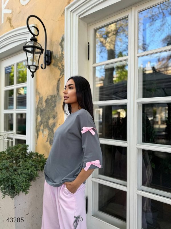 Костюм женский с бантиками 43285 темно-серый